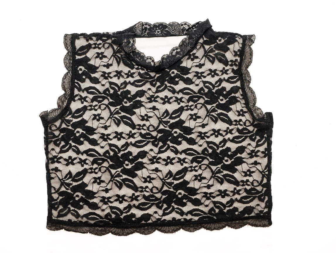 Lace Top – Solid black or white color with floral pattern. Sleeveless and round neck